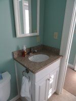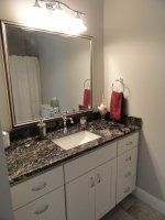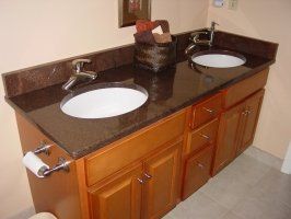 Bathroom Vanity Top Replacement from cultured marble to Cambria Quartz "Aragon"